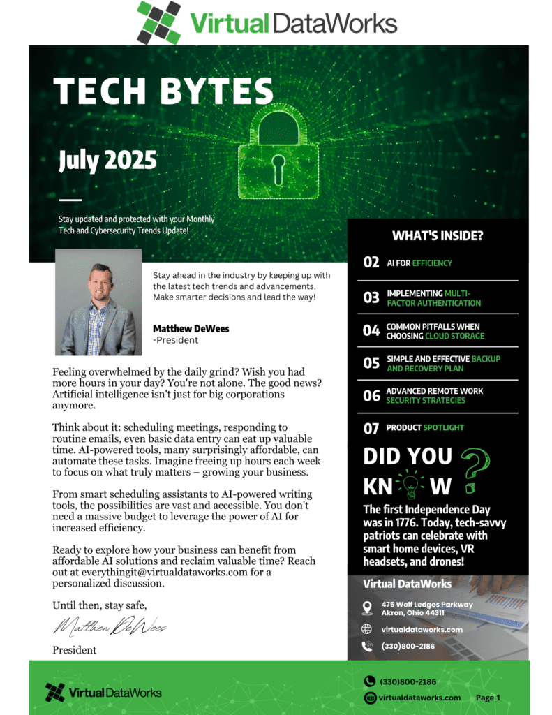 Welcome to the July edition of the Tech Bytes Newsletter! This month, immerse yourself in the latest advancements in technology and cybersecurity. Uncover the importance of cloud storage, gain a deeper understanding of backup and recovery plans, explore best practices for remote work security, and receive expert advice on implementing multi-factor authentication. Read More!