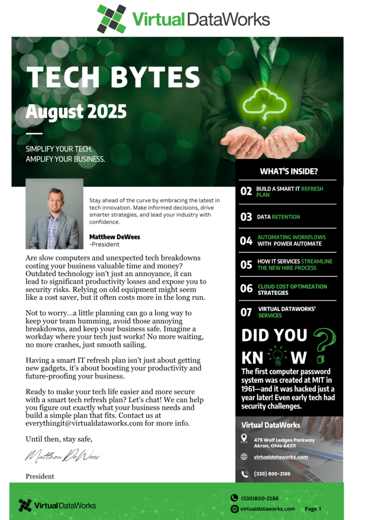 Welcome to the August edition of the Tech Bytes Newsletter! This month, dive into the cutting-edge advancements in technology and cybersecurity. Discover the significance of cloud optimization, deepen your knowledge of data retention, explore the best practices for an IT refresh, and receive expert advice on securing your supply chain. Read More!