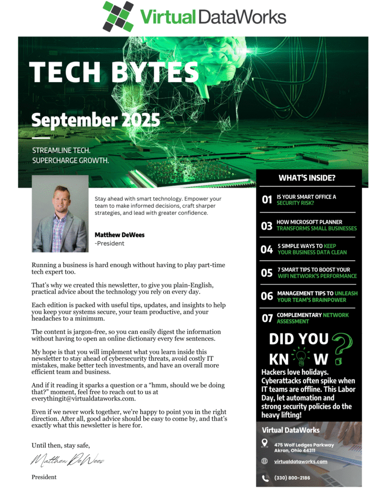 Welcome to the September edition of the Tech Bytes Newsletter! This month, explore the forefront of innovation in technology and cybersecurity. Uncover the impact of data quality, management strategies, Wi-Fi Performance secrets to boost your business productivity, and gain expert insights into securing your smart office. Read More!