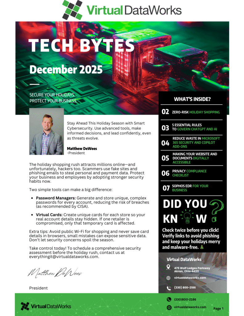 Welcome to the December Edition of Tech Bytes! December Tech Bytes delivers key insights on technology and cybersecurity. This edition covers Privacy Compliance, Zero-Risk Holiday Shopping, The Hidden Risk of Integrations, How to Stop Wasting Money on Microsoft and How to stay cybersecure coming into 2026. Read More!