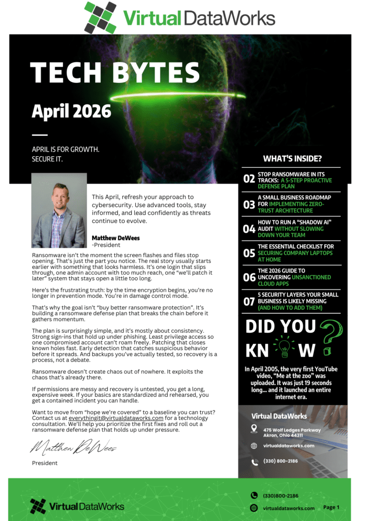 April Tech Bytes: Smarter Security Starts Here This month’s edition shares practical strategies to strengthen security, reduce risk, and build resilient IT environments. Inside, we provide insights on preparing for Shadow AI, stopping ransomware, securing company laptops for remote work, addressing unsanctioned cloud applications, and closing critical security gaps your business may be overlooking. Read…