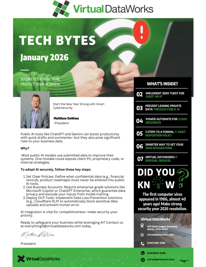 As we move into 2026, this edition focuses on strategies to strengthen security and improve efficiency. We explore how to implement Zero Trust for guest Wi-Fi, prevent private data exposure when using public AI tools, automate cloud resource management, establish effective asset disposition policies, and adopt smarter approaches to vetting SaaS integrations.
